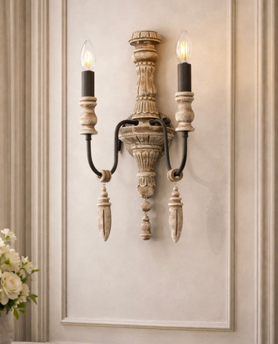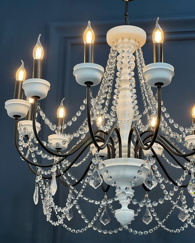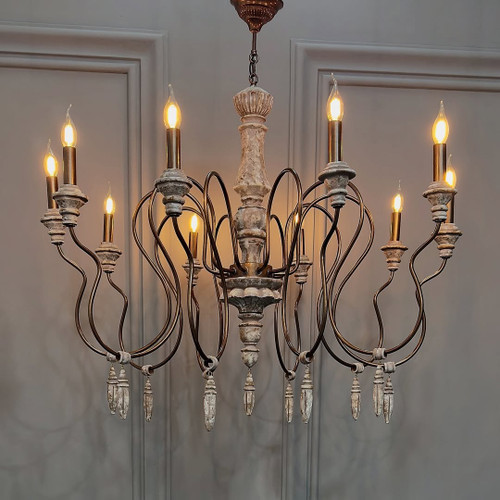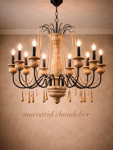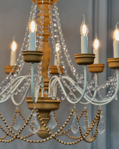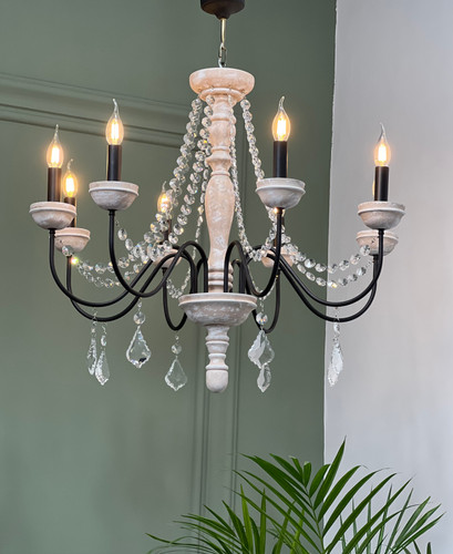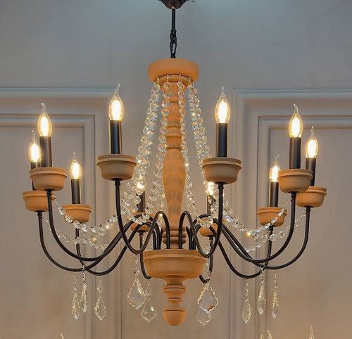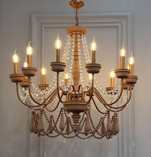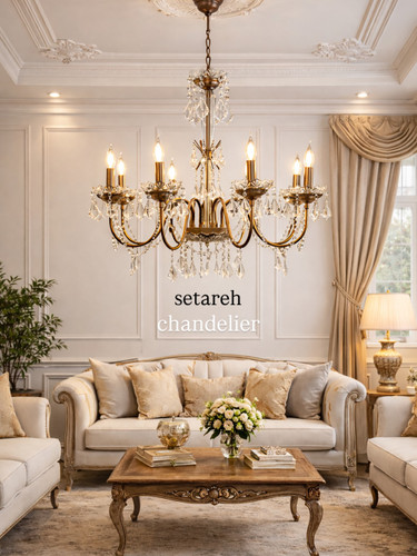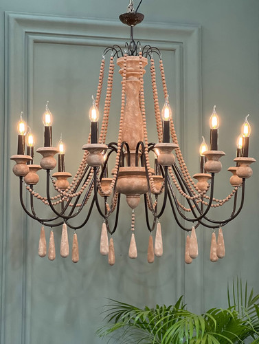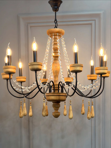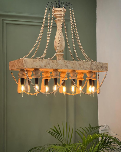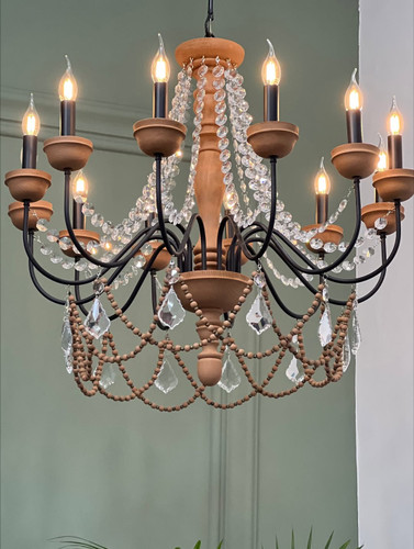 ناموجودلوستر مروارید چوبی و فلزی ۱۰ شعله